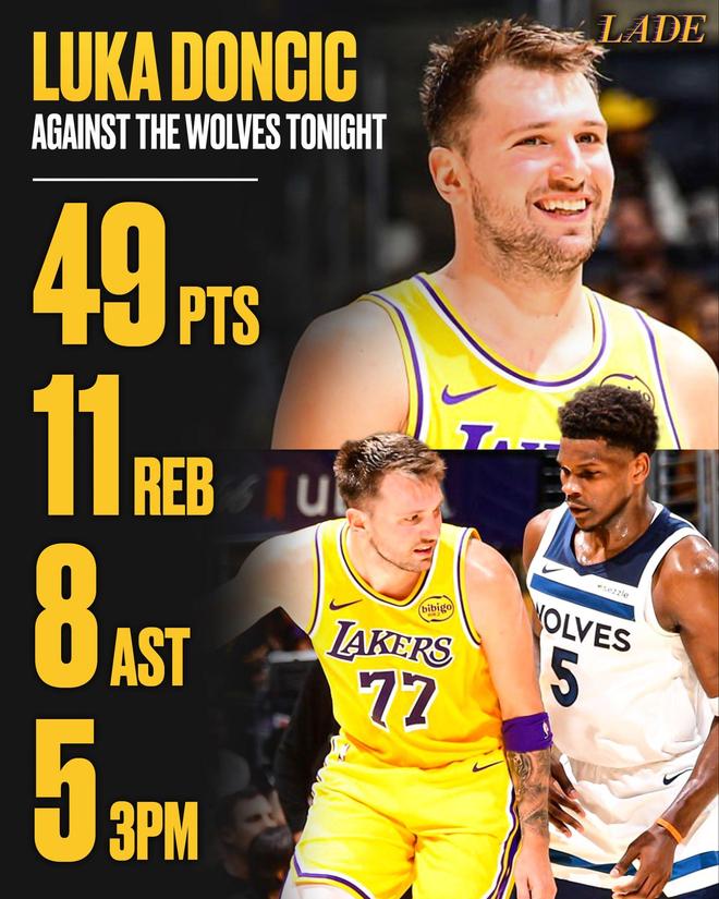 回顧本場(chǎng)比賽,湖人不少球員都發(fā)揮出色,里夫斯25分7籃板11助攻,八村壘23分2籃板,艾頓15分8籃板,全面開(kāi)花的湖人內(nèi)外兼修,讓森林狼難以招架。而要說(shuō)道本場(chǎng)比賽湖人獲勝的首功之臣,無(wú)疑是還是東契奇,全場(chǎng)比賽,東契奇出戰(zhàn)34分鐘,23投14中,其中三分球12投5中,罰球19投16中,得到49分11籃板8助攻。
