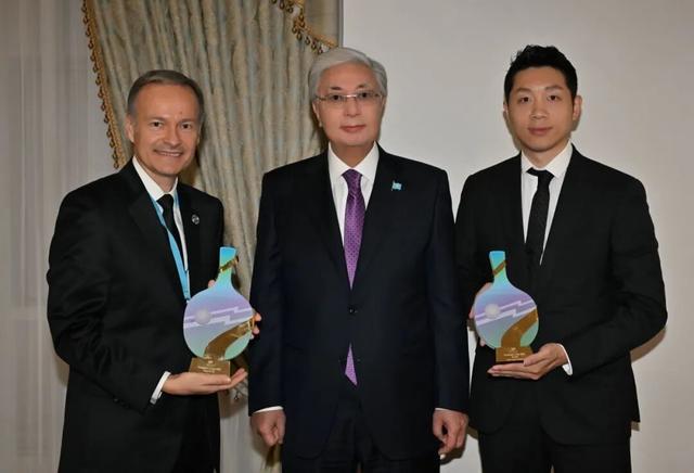 許昕與哈薩克斯坦總統(tǒng)托卡耶夫親切交流